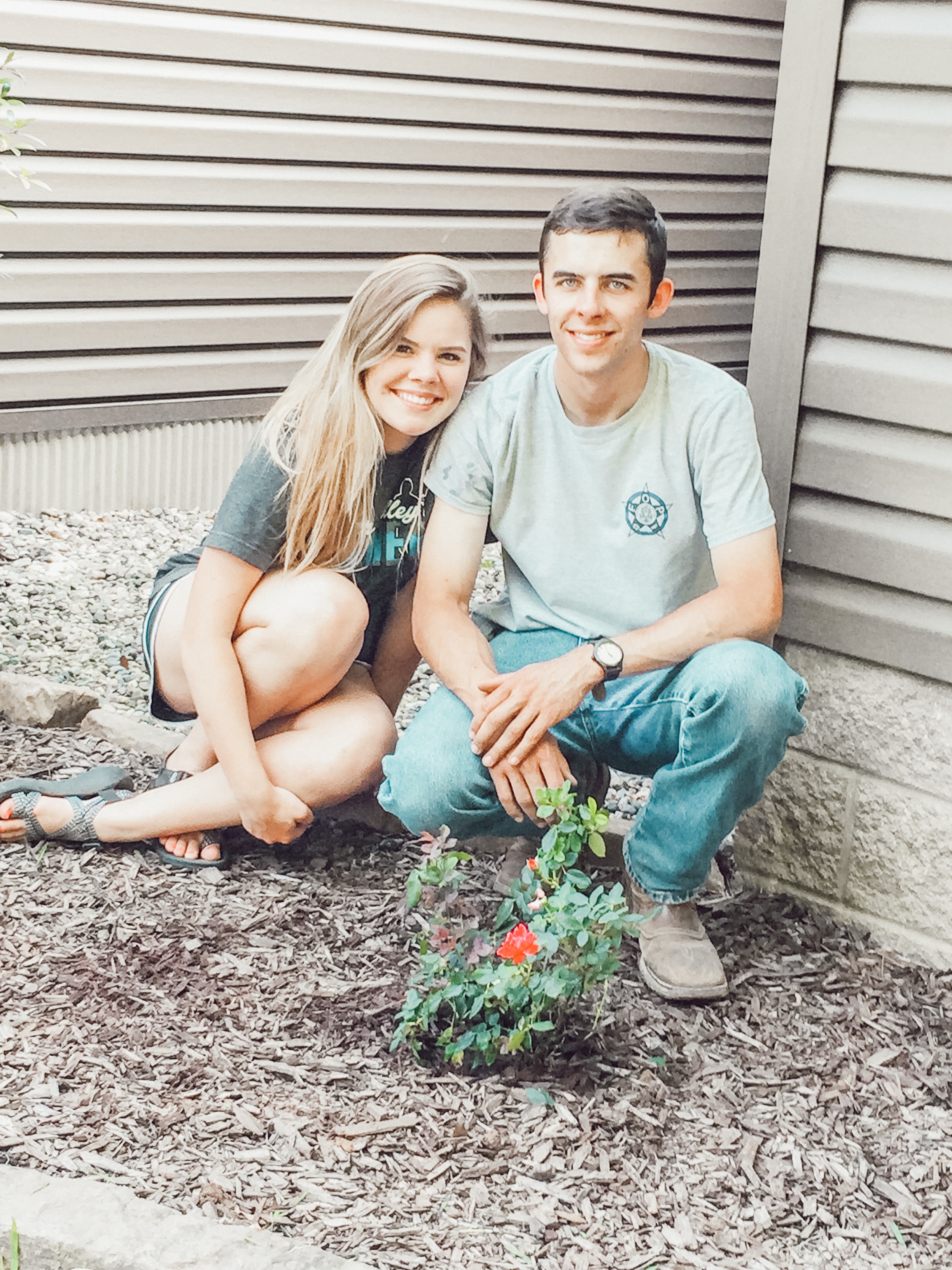 The day before we got engaged (unbeknownst to me) we planted a rose bush that had been gifted to us. The date being June 10th. He has a ton of landscaping in the front of the house, so I thought nothing of it. Adding a new plant? Cool. Move along. At that point, it was nothing but a stick, a few leaves, and a small flower. But something so beautiful came of just this simple act.