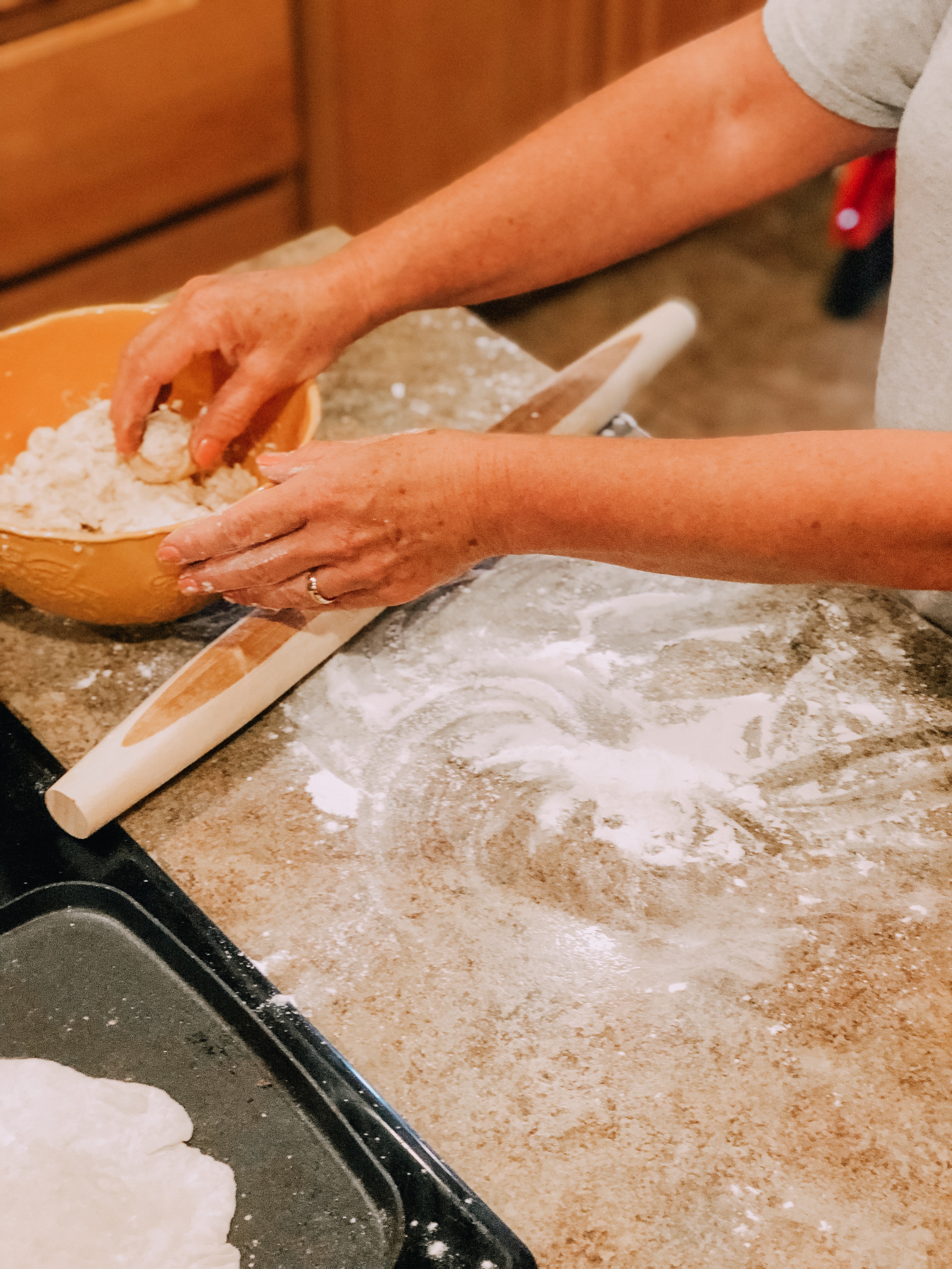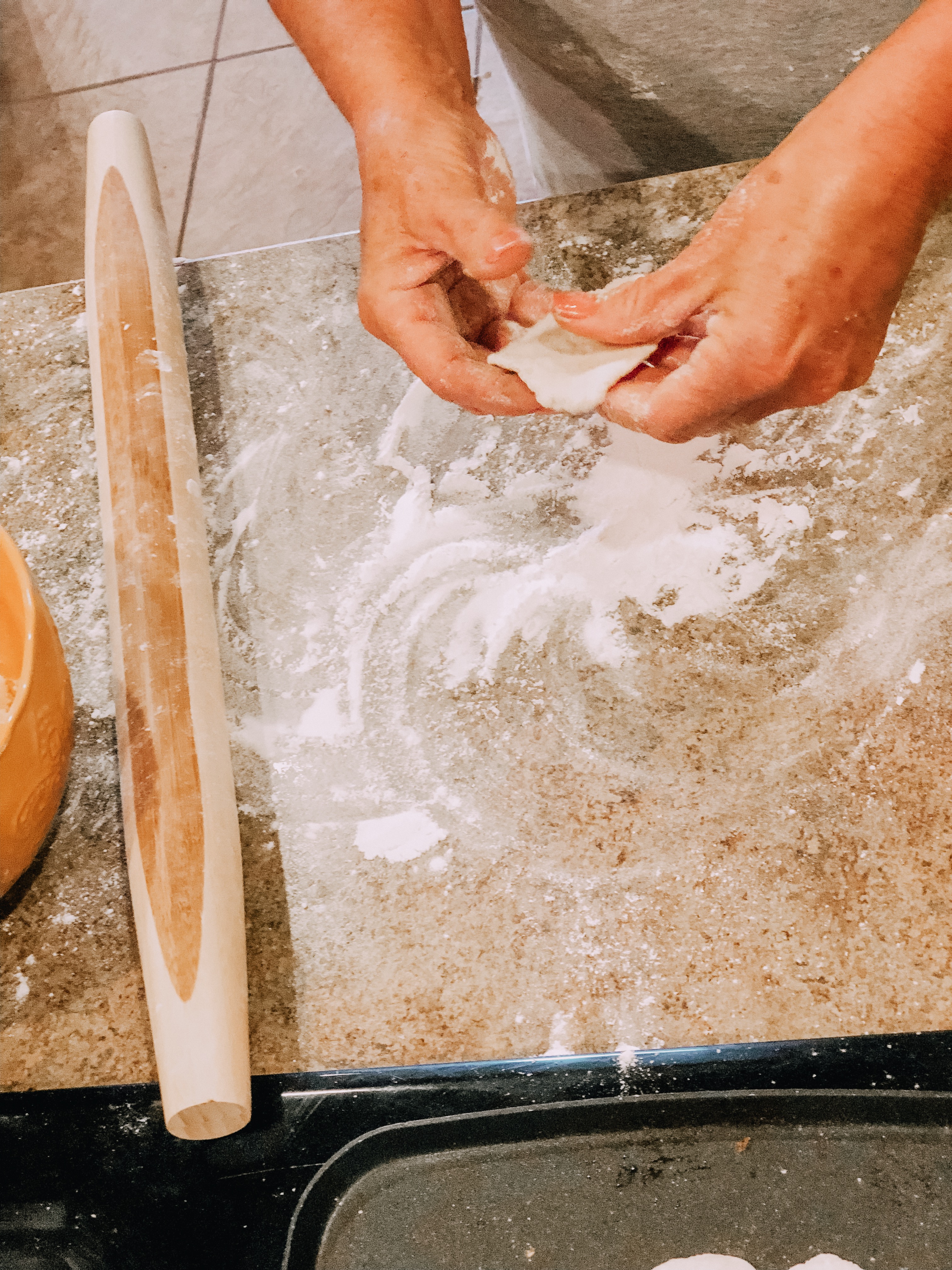5. Once risen, it is time to section out and roll your dough. I use an amount that is a little smaller than a golf ball. If you aren’t good at measuring off, don’t worry! Part of the fun in making these is that they are all different shapes and sizes.