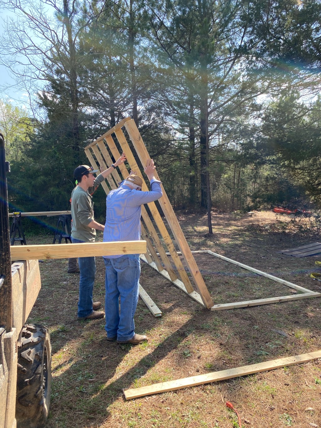 What started as a modest A frame has now evolved into a much larger, much fancier DIY coop. Which, might I add, involved 2 trips to our local Lowe’s for material. To top it off, a third trip will ensue before it’s all said and done.