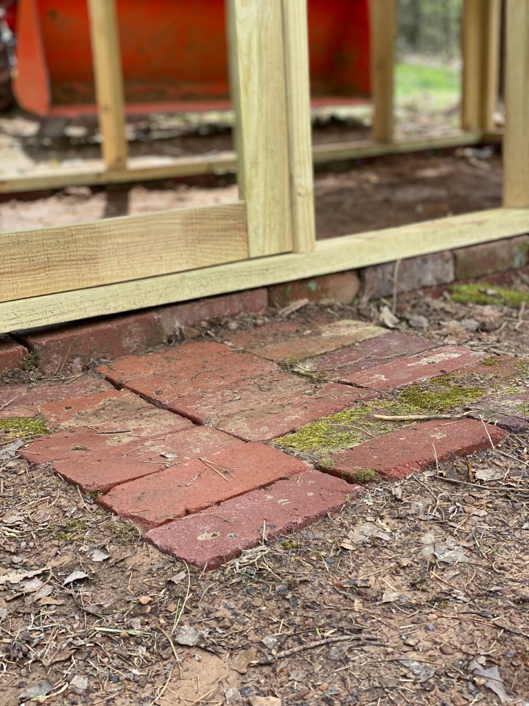 That we got back to work. In a new location! Now, our coop is nestled between a few shade trees with a brick in-lay foundation and…