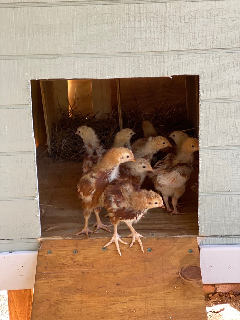 We now have humming birds present on our front porch, baby birds nestled on our rain gutter and in our local peach trees, rose buds are begging to open towards the sunshine, and of course baby chicks sprouting wings like weeds.