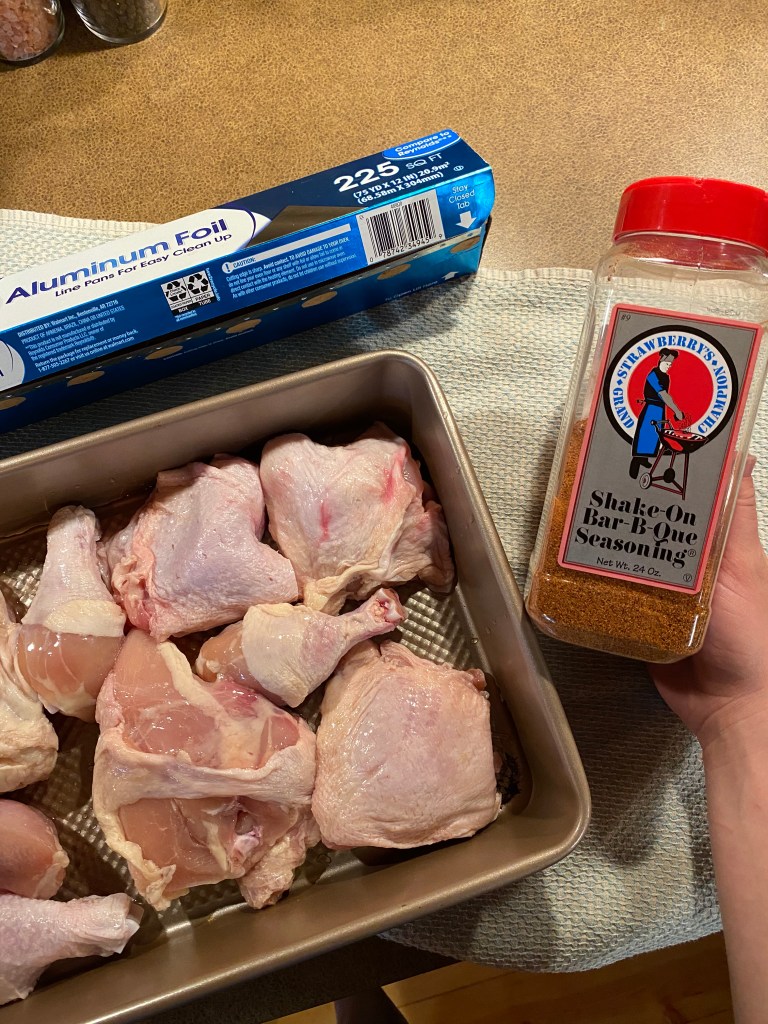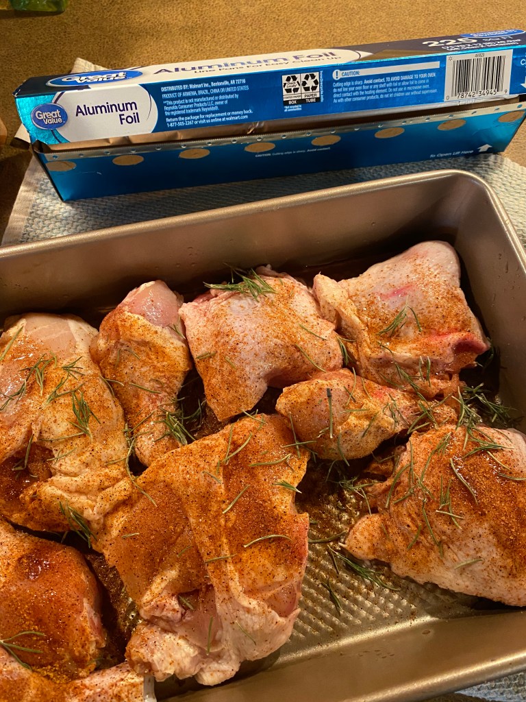I know I mentioned that skin on helps the chicken retain moisture so why do I opt to cover with foil as well? The answer is simple, when you combine both methods of moisture retention, the chicken will quite literally fall off the bone which is exactly how I prefer my chicken.
